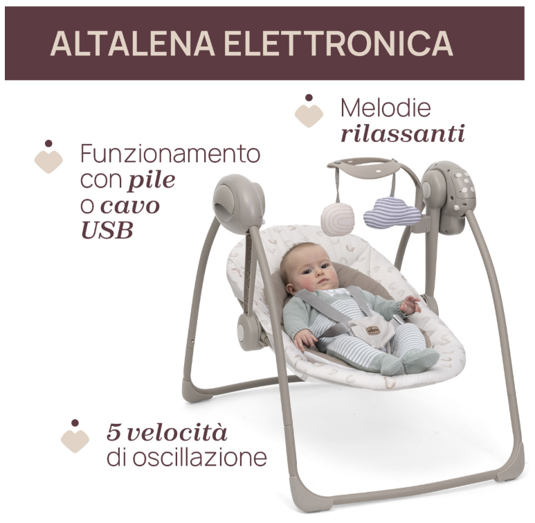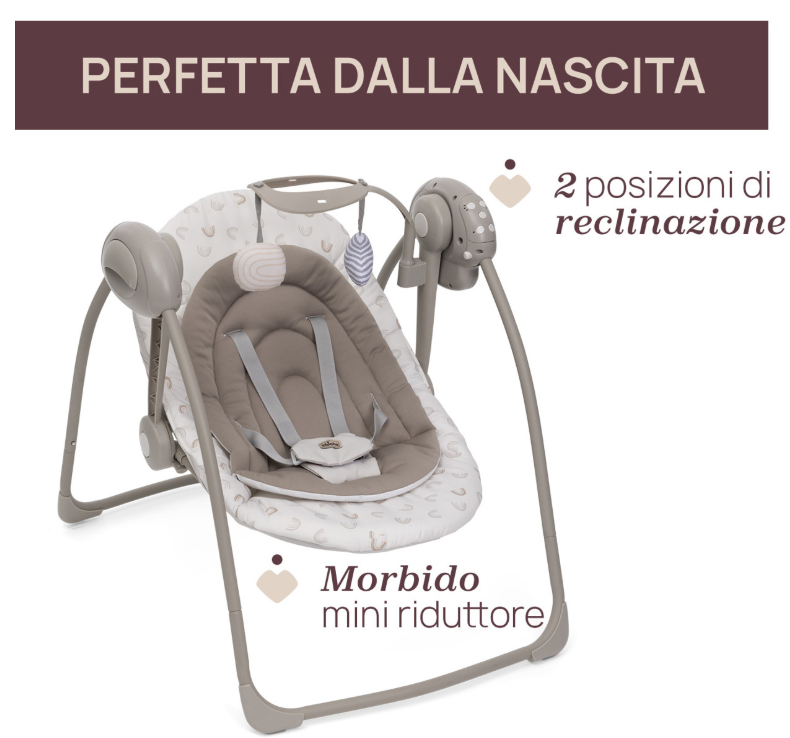 – Dispone di una selezione di melodie pensate per calmare e intrattenere il tuo bambino mentre dondola.