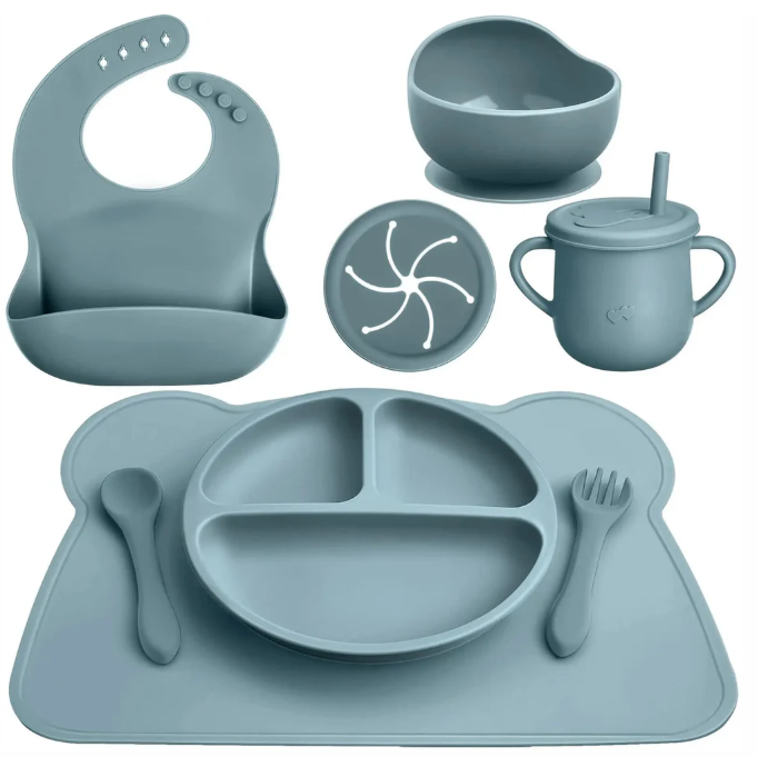 • Set completo: include piatto, ciotola, cucchiaio e bicchiere per ogni esigenza dello svezzamento